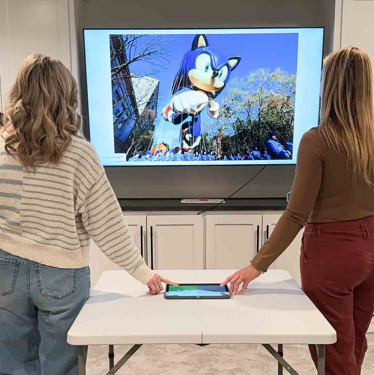 You’ll need a large TV that is easy to see and a phone or computer that can either mirror to that TV or can connect via HDMI. It is MUCH easier to play if you mirror than to hook up via HDMI but connecting will also work too if you don’t have mirroring capabilities.