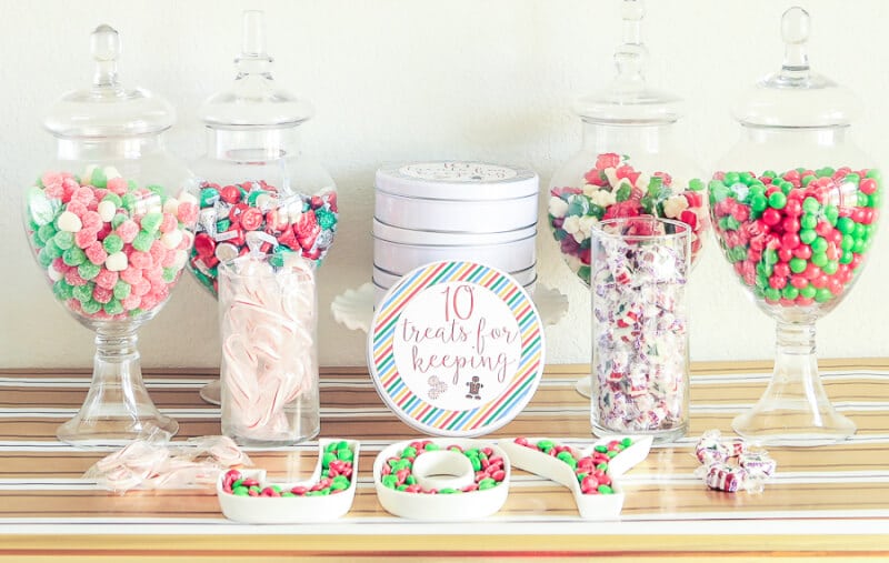 One word of advice, go with the mini tins or else you’ll have people taking whole jars full of candy home. The mini tins were the perfect size for my holiday treats for keeping buffet.