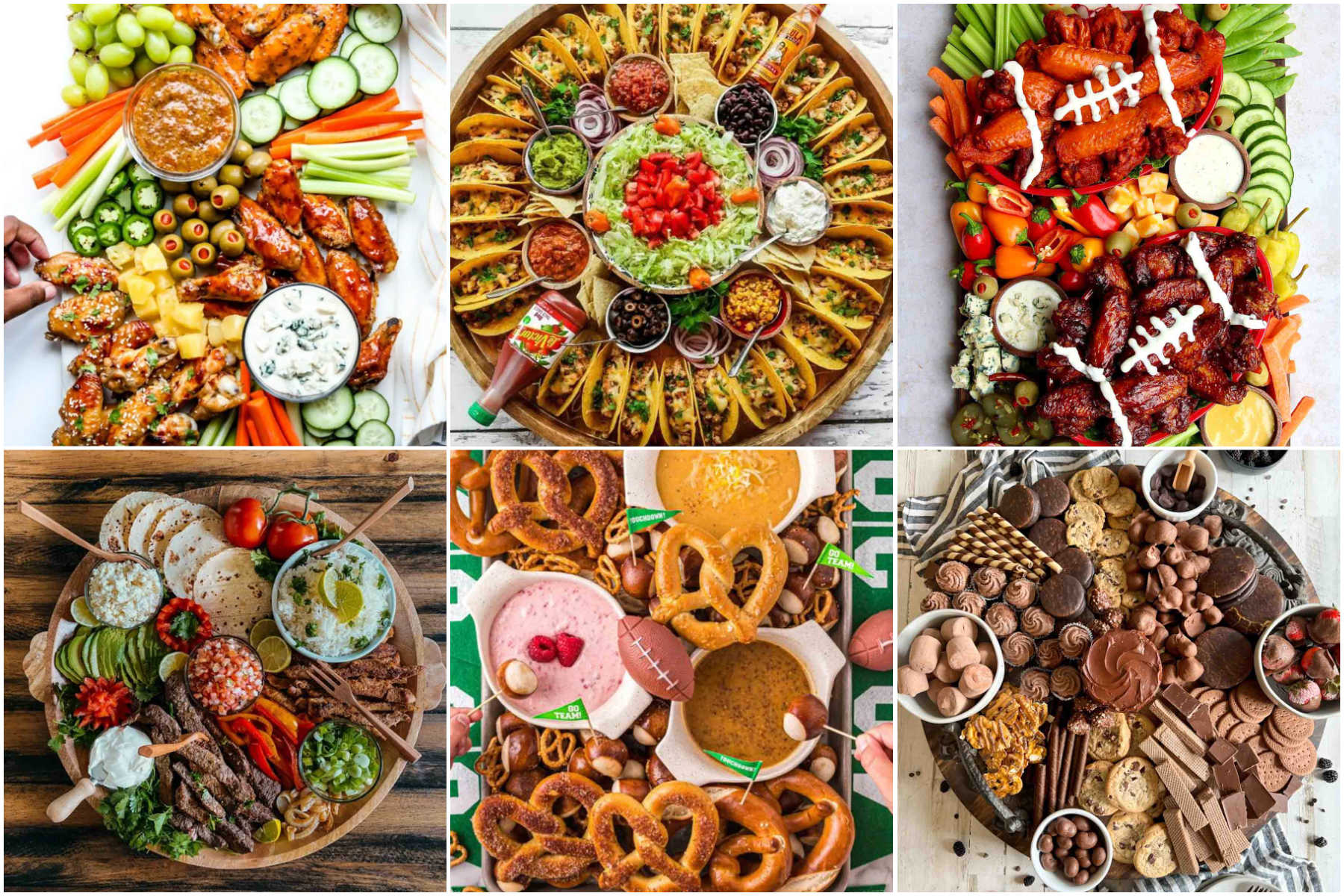 Surinkiau daugybę smagių idėjų, kaip į vieną skanų užtepėlę sudėti visus mėgstamus futbolo tematikos patiekalus! Jei norite, kad tai būtų būdinga „Super Bowl“ komandoms – viršuje pridėkite keletą šių „Super Bowl“ spausdinamų nuotraukų, atnaujintų su šių metų komandų spalvomis ir skaičiais!